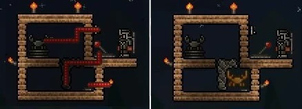 Crab engines are mechanisms that may be built with one or more crab statues. Crabs, by nature, jump at a rapid pace. If they are left in a confined space with a Red, Green, or Yellow Pressure Plate to jump on, they will press the switch at a rate about 50% faster than a 1 Second Timer. This setup is useful for farms and other mechanisms with a cooldown of less than one second.