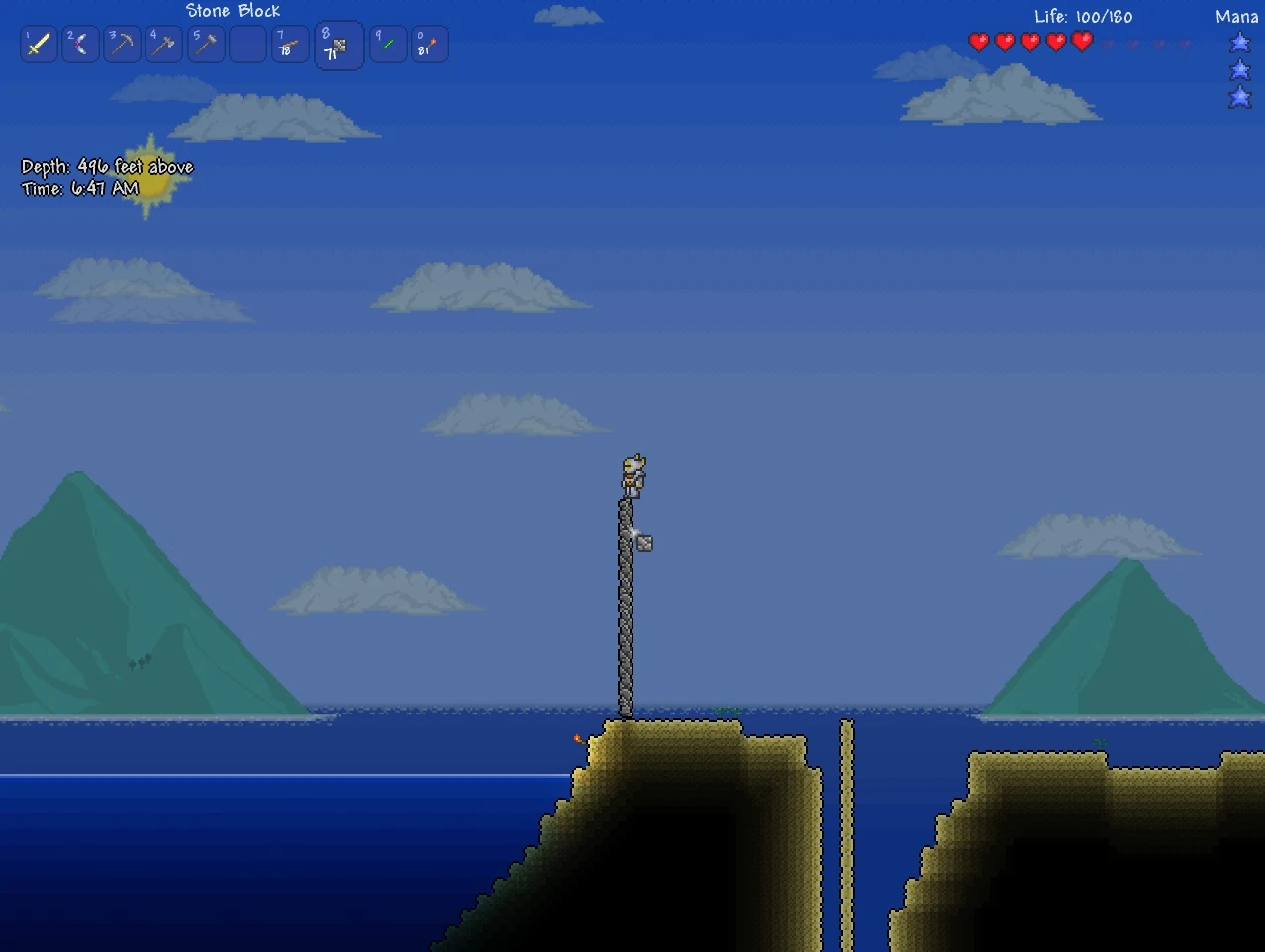 This layer is located just below sea level. You can tell when you've reached this layer when the background changes to a mix between dirt and stone, and when the music changes to the underground theme.