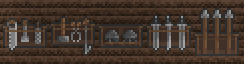 The Sword Rack is a decorative item that can be placed on a background wall in a similar fashion to Paintings. There are three swords visible on the rack. It looks similar to other racks.